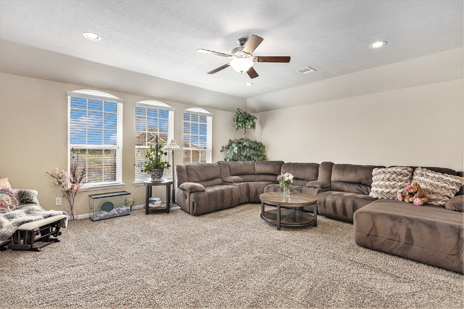 Stunning Home in Stone Crest â?? Move-In Ready! Discover luxury and convenience in this beautifully designed home, nestled in the highly sought-after Stone Crest subdivision! With soaring ceilings, a cozy fireplace, and a gourmet kitchen featuring granite countertops and stainless steel appliances, this home is built to impress. The main-floor primary suite offers a spa-like retreat with dual sinks, a soaking tub, and a spacious walk-in closet. Upstairs, enjoy a game room, three bedrooms, a Jack-and-Jill bath, and a charming balconyâ??perfect for relaxing! Step outside to a screened porch, fenced yard, and enjoy access to top-tier community amenities, including a pool, sports courts, and scenic walking trails. The images provided are for illustrative purposes only and showcase the space furnished with various items, such as beds, sofas, tables, washers, dryers, and LED TVs, which are not included in the rental. Your dream home awaitsâ??apply today!